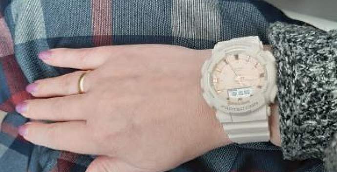 Индекс, а также часовая и минутная стрелки GMA-S130PA выполнены из розового золота. Данные цветовые сочетания  прекрасно сочетаются с модой современного спорта и другой одеждой.